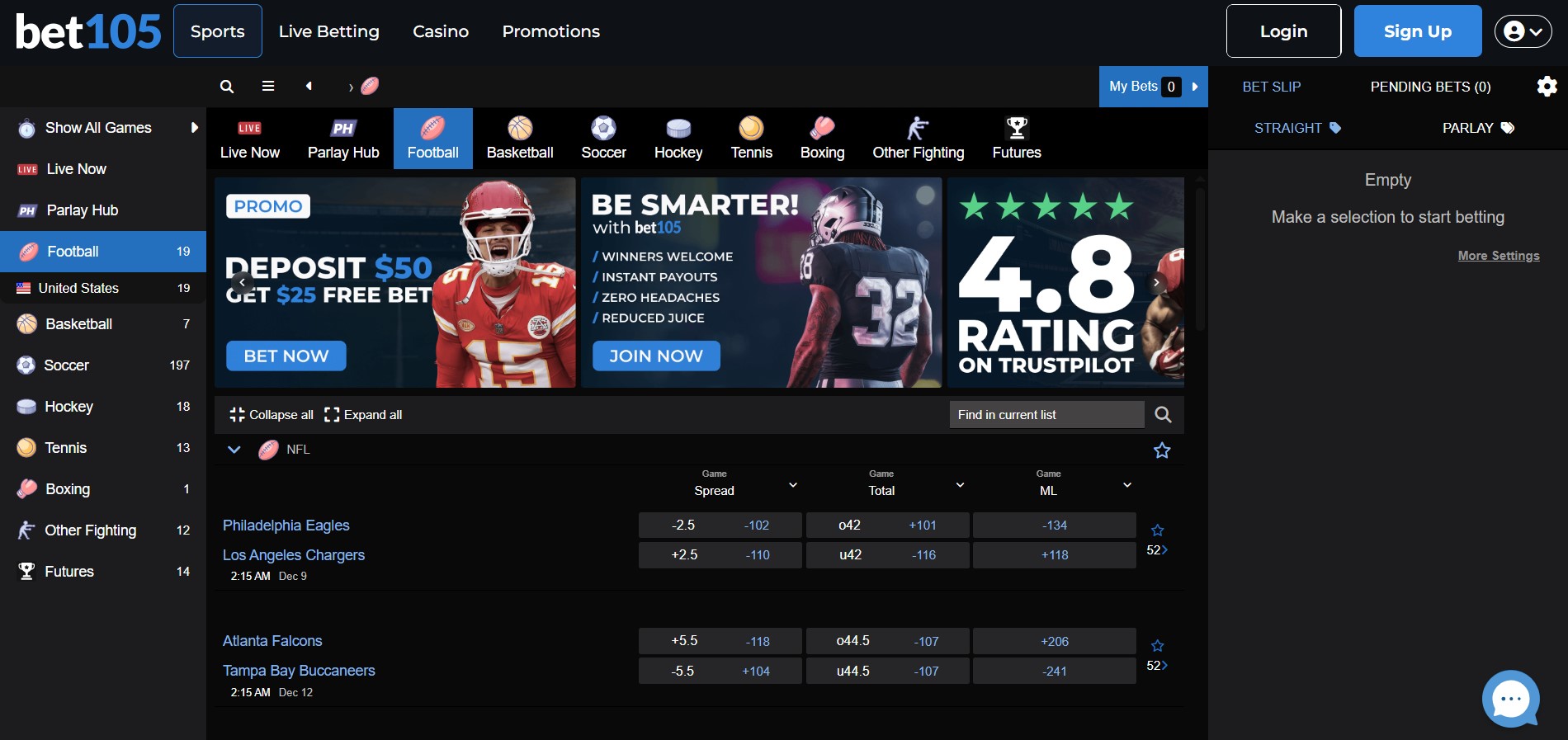 BetNow is a classic offshore book that fits neatly into the best Texas sports betting sites conversation, especially for players who want a simple interface and familiar US markets. The sportsbook focuses on the big American leagues, college action and horse racing, with straightforward lines and live betting, while the casino side adds slots, table games and a modest live dealer lobby.