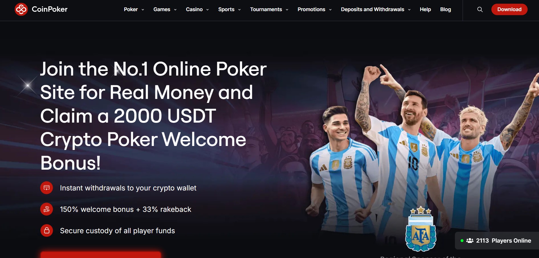 2. CoinPoker – No KYC crypto poker, casino and sportsbook for Texas players